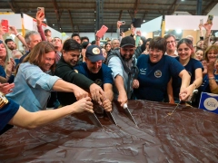 12 de Mayo de 2025 “Una locura dulce”: cortaron y compartieron un alfajor de 310 kilos en la feria de Gualeguaychú