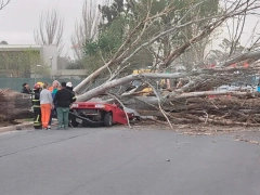 Árbol de gran porte cayó sobre un vehículo familiar en calle Celestino Marcó