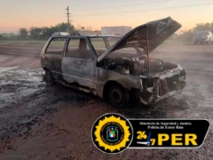 Voraz incendio consumió un auto sobre ruta 11 en Victoria