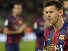 Messi exhibió el trofeo de goleador histórico de la Liga española