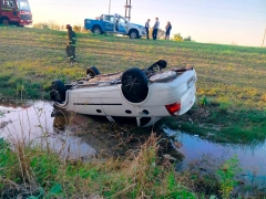 Conductora perdió el control de la camioneta y chocó contra un árbol en Crespo