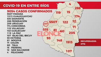 Detalle por localidades de los 150 casos de Covid en once departamentos