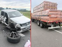 Bajo la lluvia, una camioneta chocó contra un camión sobre Ruta 16
