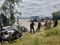 25 de Octubre de 2025 Un auto cayó al río Paraná en Hernandarias y tuvo que ser rescatado por bomberos: el video del hundimiento