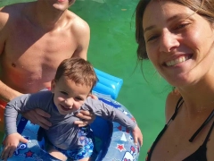 Luca Cubero conoció la playa y Mica Viciconte deslumbró en traje de baño
