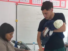 7 de Noviembre de 2025 Noble gesto: profesor entrerriano sostiene en brazos a bebé de una alumna y da clases