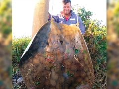 14 de Mayo de 2025 Dos pescadores capturaron una imponente raya de más de 150 kilos tras cinco horas de lucha
